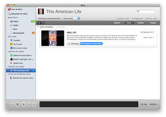 Miro incluye varias fuentes para descargar contenido, a las que añadir tus propios feeds RSS. En cuanto al reproductor, es compatible con los formatos más usados de vídeo, audio y subtítulos.